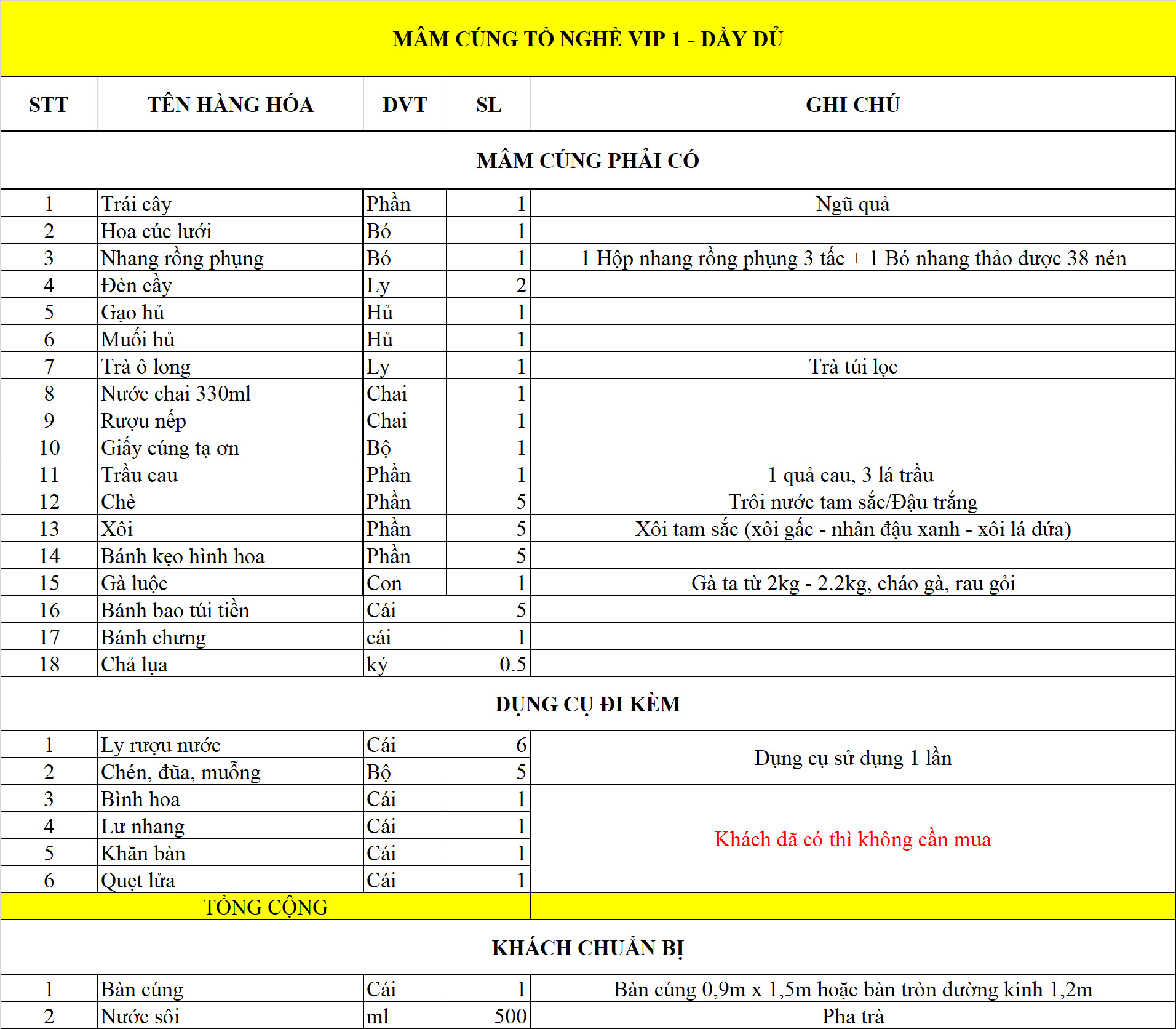 1. Các lễ vật trong mâm cúng tổ nghề ?