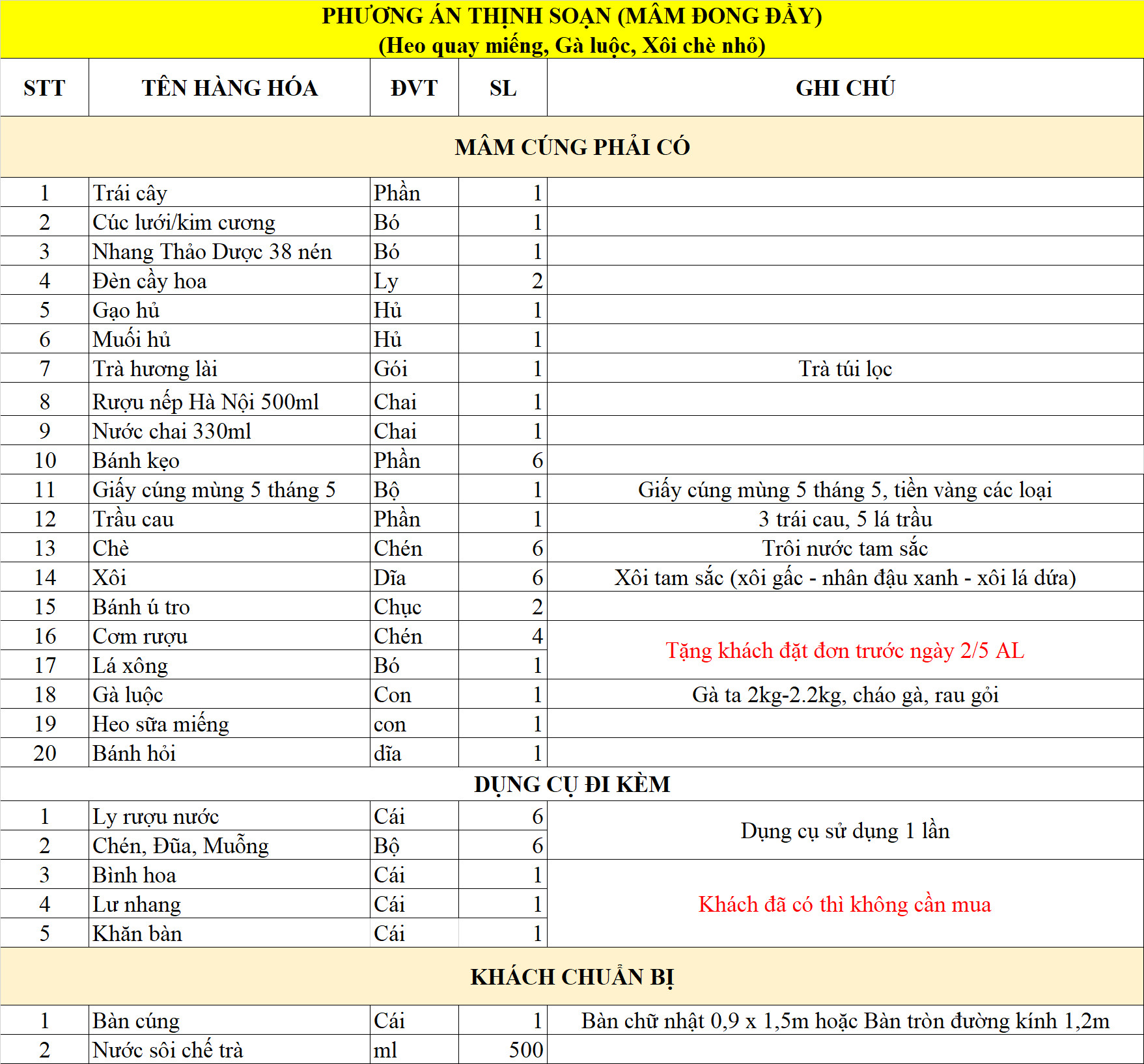 Mâm Cúng Tết Đoan Ngọ Đong Đầy