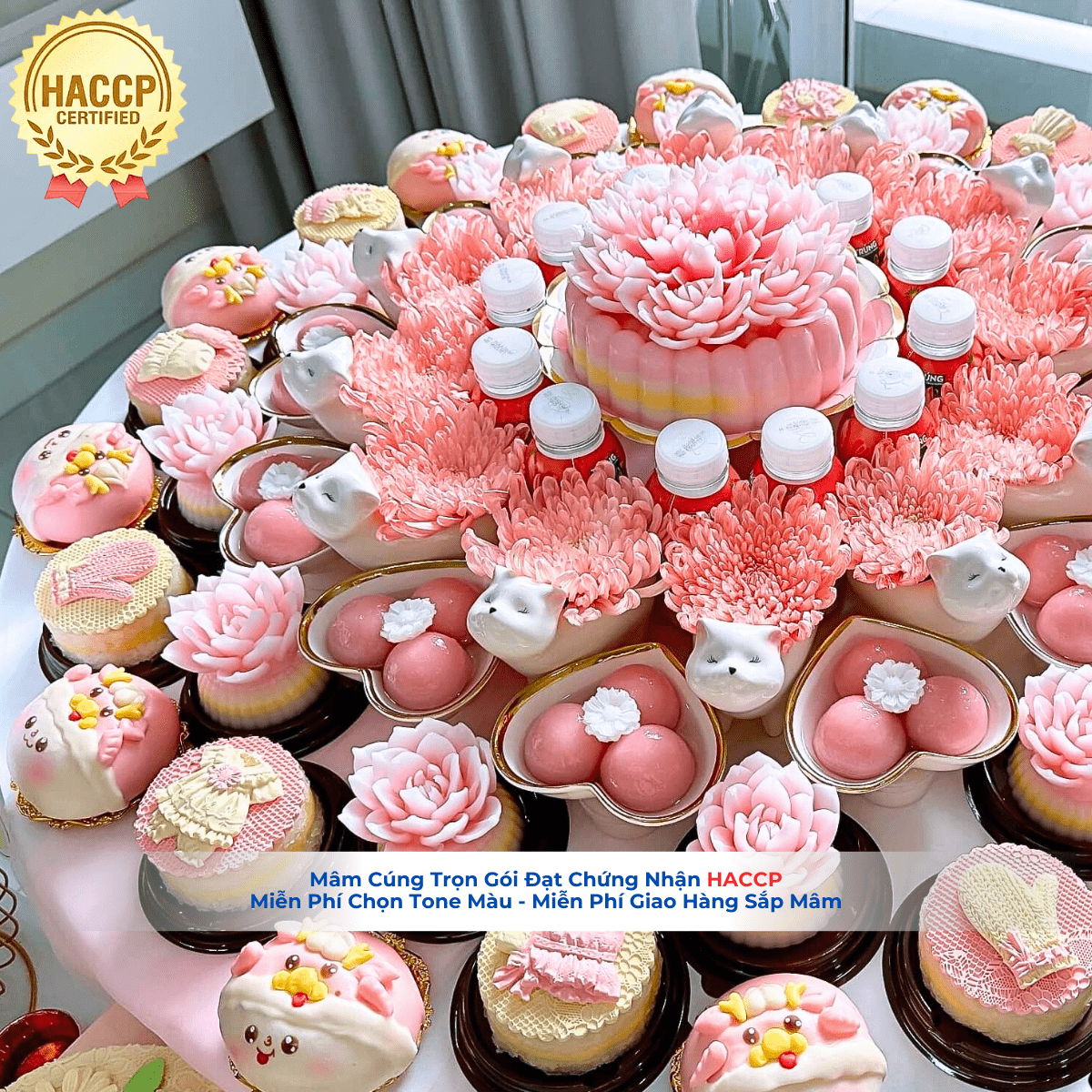 - Mâm Cúng Đạt Chứng Nhận An Toàn Thực Phẩm Quốc Tế HACCP ( Chứng nhận này cực khó lấy, phải đạt rất nhiều tiêu chuẩn về thực phẩm, môi trường, đóng gói... mới được)